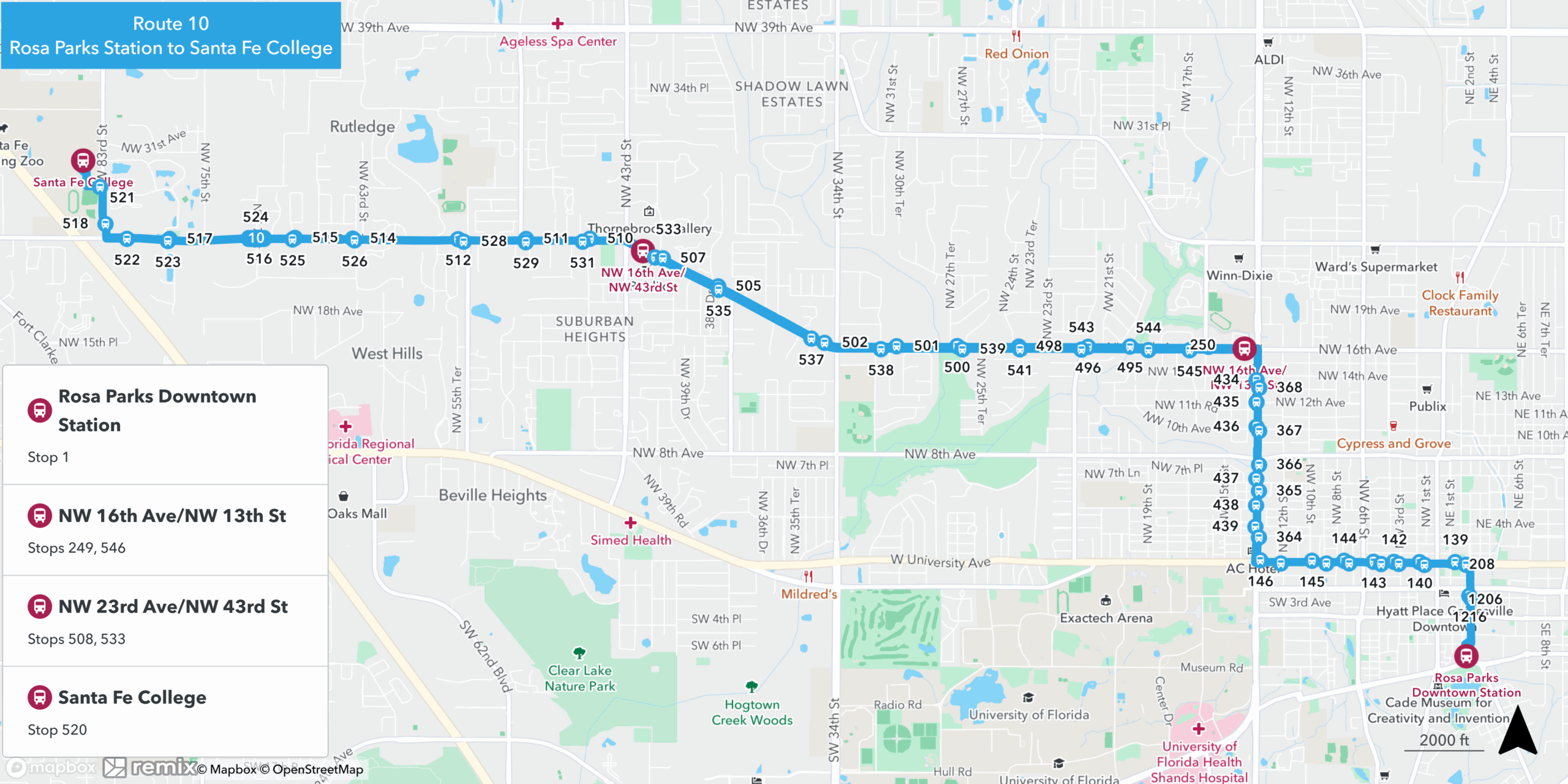 Downtown StationNW 16th Ave/ NW 13th StNW 23rd Ave/ NW 43rd StSanta Fe CollegeSanta Fe CollegeNW 23rd Ave/ NW 43rd StNW 16th Ave/ NW 13th StDowntown Station